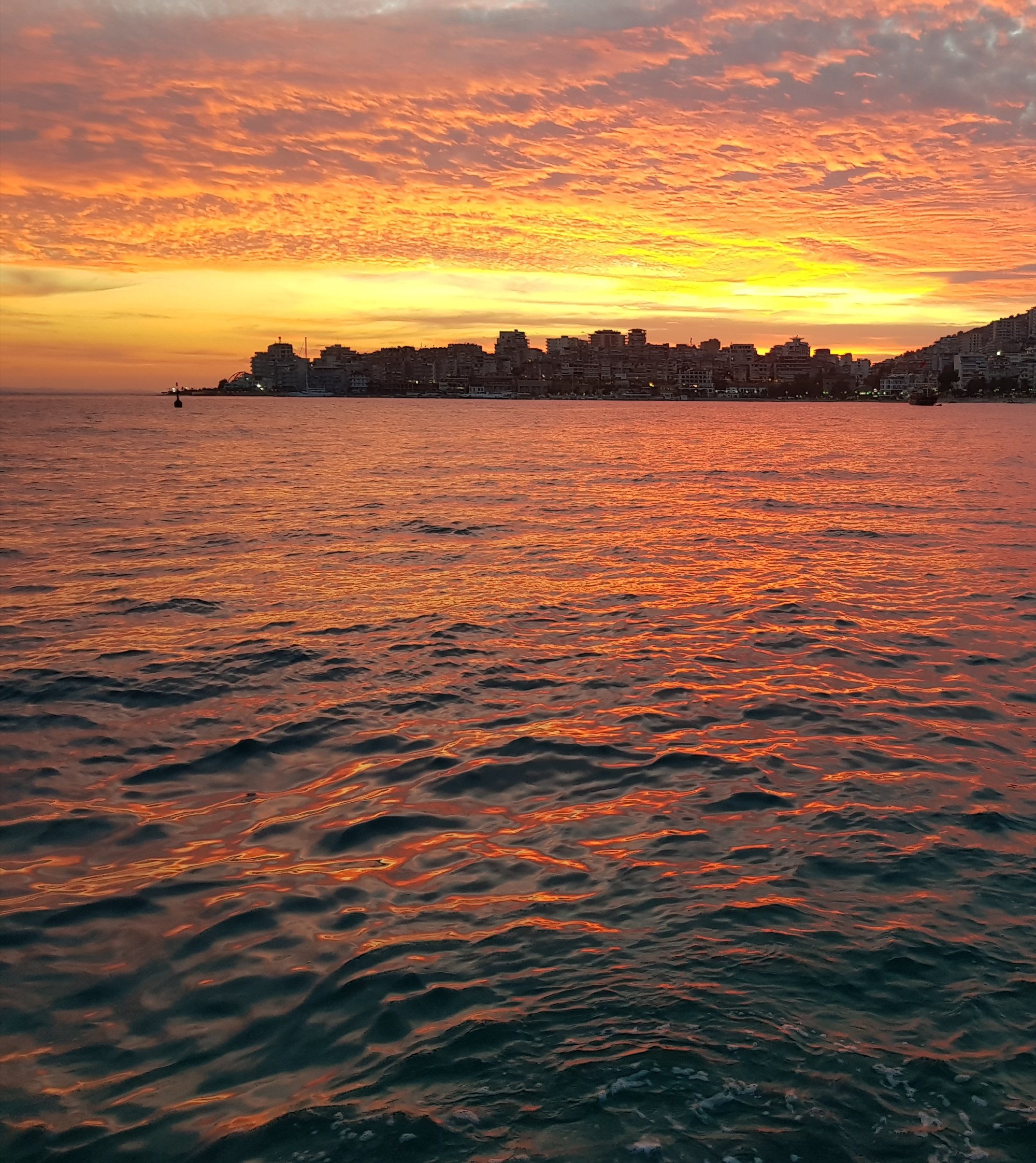 We go down to the seafront for a beer, and he tells me a bit about himself. He’s a fifty-five year old American, who was once married, corporate, religious and in the US military. Then he got divorced, started to question the way he was living his life and sold everything so he could travel. He also has a decent US Air Force pension that allows him to indulge this lifestyle. If it is a mid-life crisis he’s going through, then it’s a spectacularly good one. He says he got into nudism when he was renting a big, four bedroomed house at Key West in Florida. He kept one room for himself and rented out the other three as holiday lets. At first he didn’t realise that Key West was famous for being a nudist destination, and was continually declining requests that asked if his accommodation was ‘clothing optional.’ Eventually he accepted one group of guests who then spent their whole time at his house in the nude. In the end he just followed suit, and is now a convert. Although, he tells me that here in Sarandë he only goes naked in the evening.