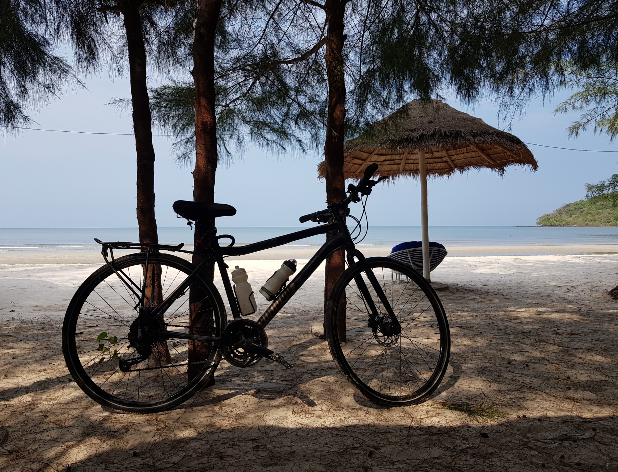 And then, a mere sixteen days after arriving in Cambodia, I’m getting ready to depart. Because I took the bus for my touristy side trip to Siem Reap, I’ve only cycled around 500km through the whole country. Mind you, 100km of that was my sweltering, energy-sapping trek of two days ago. I know it’s difficult to build up a true perspective of a country having only seen small parts in such a short time, but on the whole I’ve enjoyed myself. Cambodia seems less developed and less organised than Vietnam although, strangely, I’ve found it to be slightly more expensive. Physically, it’s been a challenge cycling through some of the flat inland regions, which is more down to me being drained by the heat in dusty, scorching dry season. The terrain has been relatively easy apart from the last couple of days. To make up for the barren areas between towns, there’s the modern vibrancy and cafes of Phnom Penh, the ancient temples around Angkor Wat and my current laid-back beachside location.