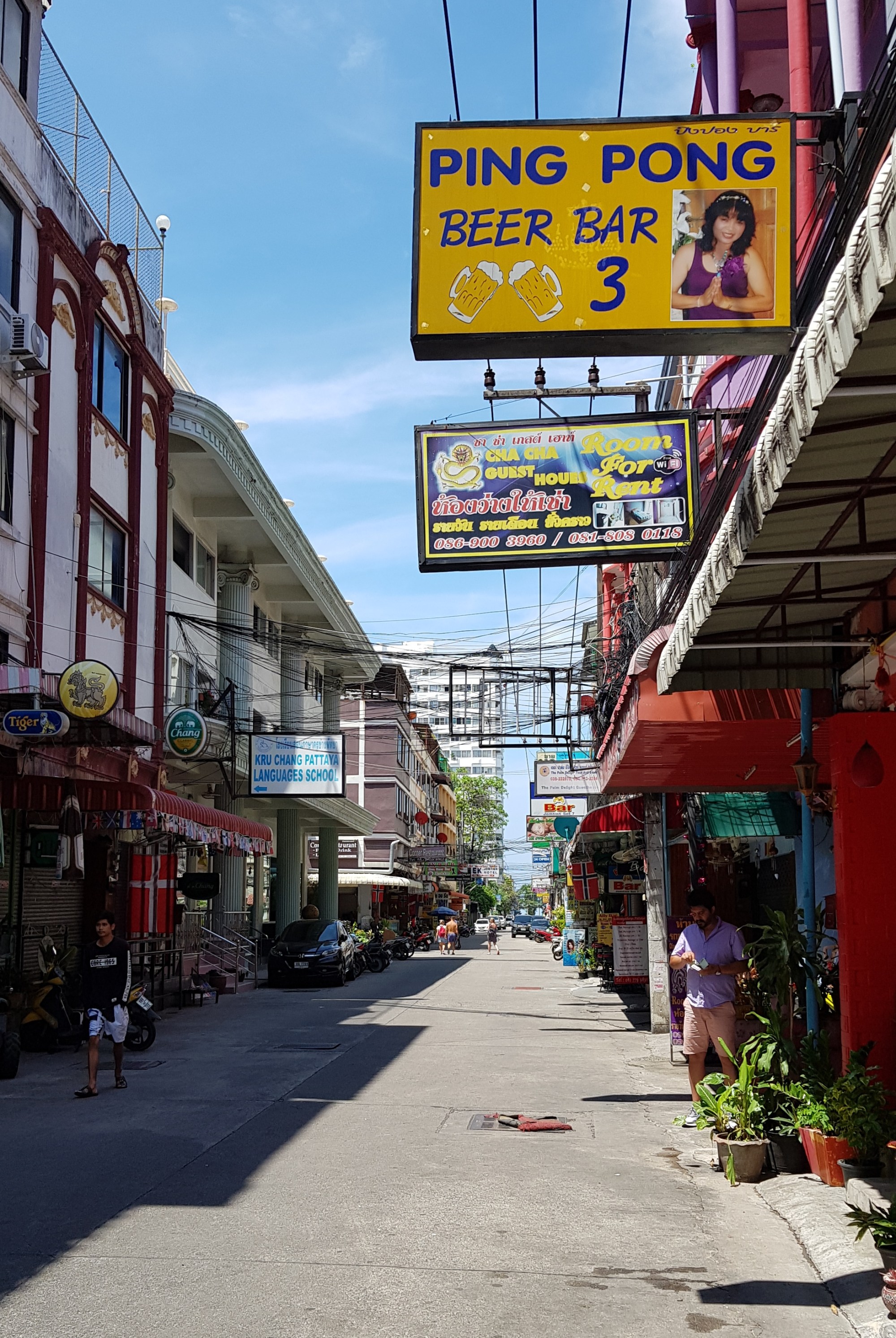 My accommodation is right next door to Ping Pong Beer Bar 3 and opppsite the tastefully named Beaver Bar. To access my second floor room I have to go through a ground floor ‘massage parlour.’ A couple of the girls offer me a massage and say it’s safe to leave my bike outside as they will watch it for me. Nonetheless, their chatter doesn’t inspire much confidence, so I chain the bike to railings outside a language school across the narrow street. What a language school is doing in the middle of all this debauchery is beyond me. Once I’m through the massage parlour I realise there’s an alleyway and rear entrance to the building, so I walk straight back round to retrieve my bike from outside. Despite all the surrounding depravity, my room turns out to be surprisingly nice.