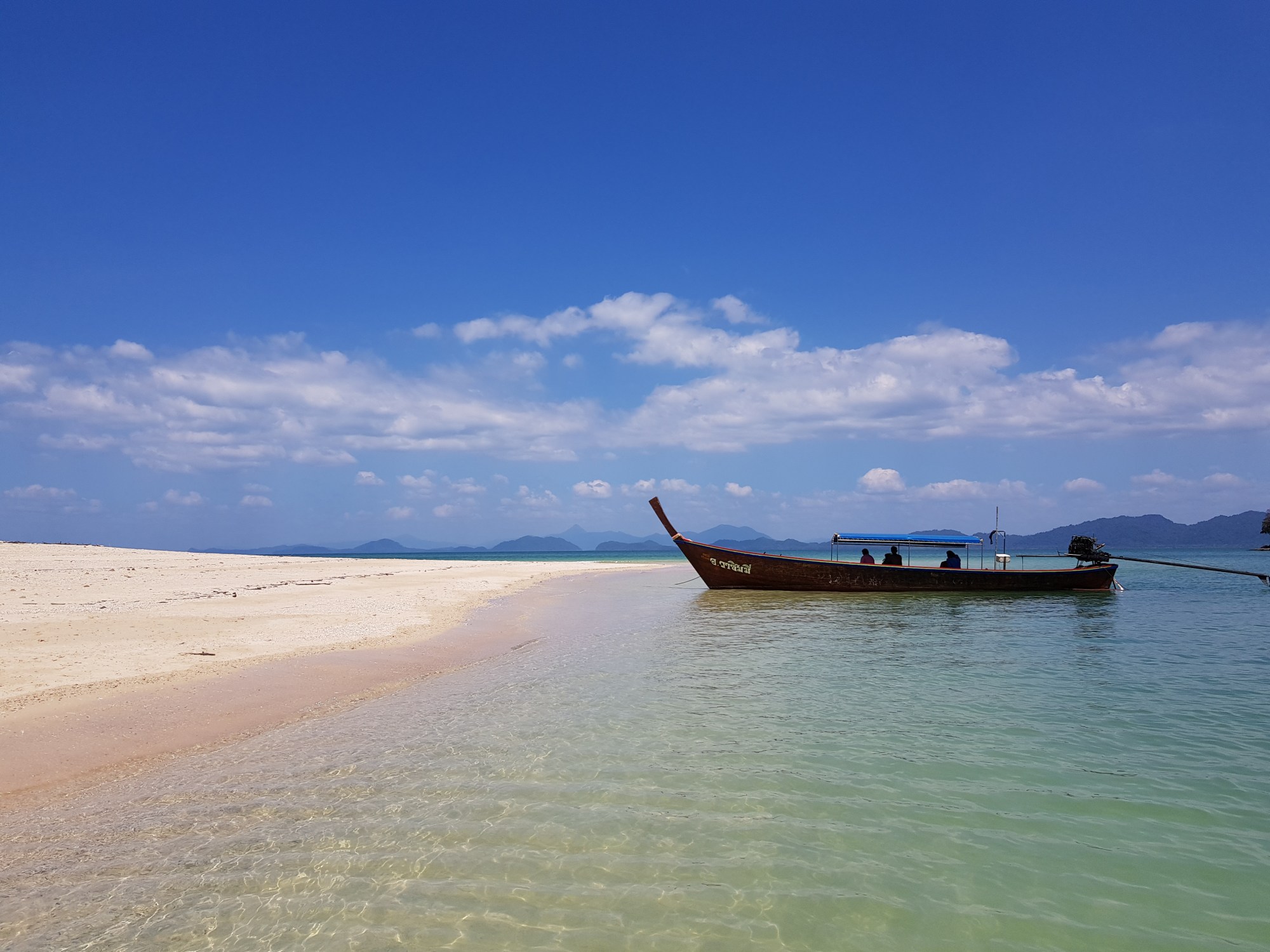 For the island hopping trip I’m joined by a Dutch couple in their fifties and a French couple of roughly the same vintage. The French guy looks like he could be a smaller, stockier version of Gerard Depardieu. We all jump in the back of a pick up truck, before we’re driven to the pier and then transferred to a wooden long-tail boat. Our first island has a small roped off area above a shallow reef for snorkelling, although the visibility isn’t great. Through the mist I do manage to spot some angelfish, clownfish, parrotfish and dozens upon dozens of malevolent black sea urchins, some with spines as long as knitting needles. The second island is mostly beach, but with a cracking viewpoint that’s accessed by climbing up a jungly hill using ropes, creepers and bamboo trunks.