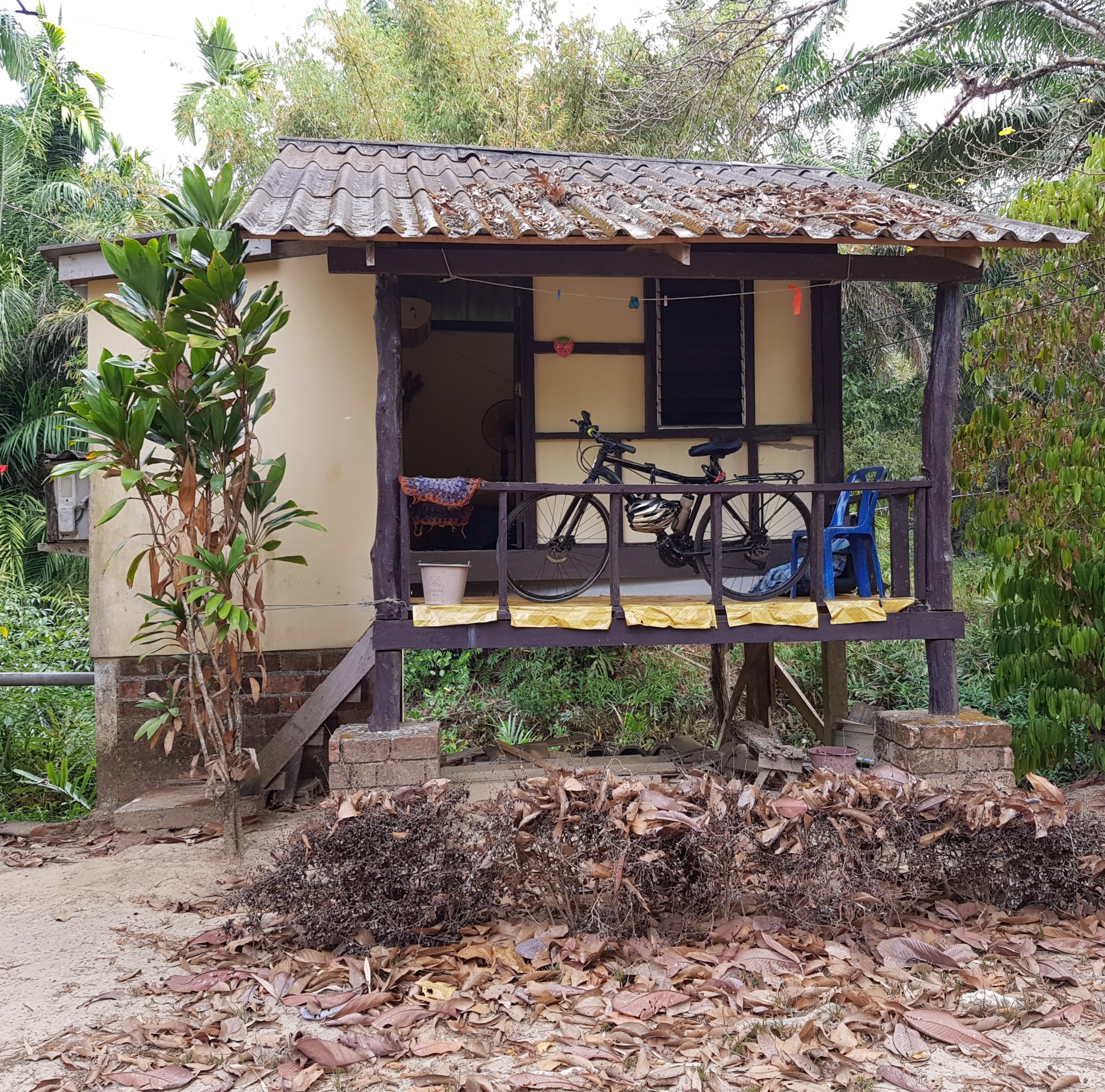My accommodation is a small bamboo bungalow in a private tropical garden, raised about a metre off the ground and with a roof made from palm tree fronds. It’s a step up from last night’s primitive hovel, although there’s still plenty of gaps between the bamboo for hungry mosquitos to squeeze through. The room isn’t much bigger than the single bed it contains and is breathlessly hot when I step inside. I chain my bike to the bamboo patio, remove the front wheel as an extra theft deterrent and head off to the communal bathroom block for a much needed shave and shower.
