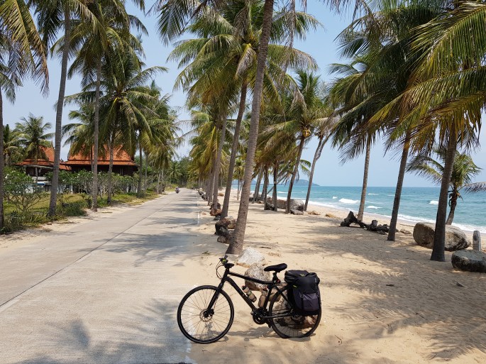When I get back to the ‘Resort’ I notice that my head looks a bit red, which shouldn’t be the case as my forehead and nose are always shaded by the peak of my cycling helmet. Perhaps it’s just a result of being out in the heat for so long today. Nonetheless, I seemed to cope with the longer distance otherwise. As a reward I’ve decided to stay for two days after reaching Ban Krood Beach tomorrow. It’s about time I had my first Rest Day of this trip.
