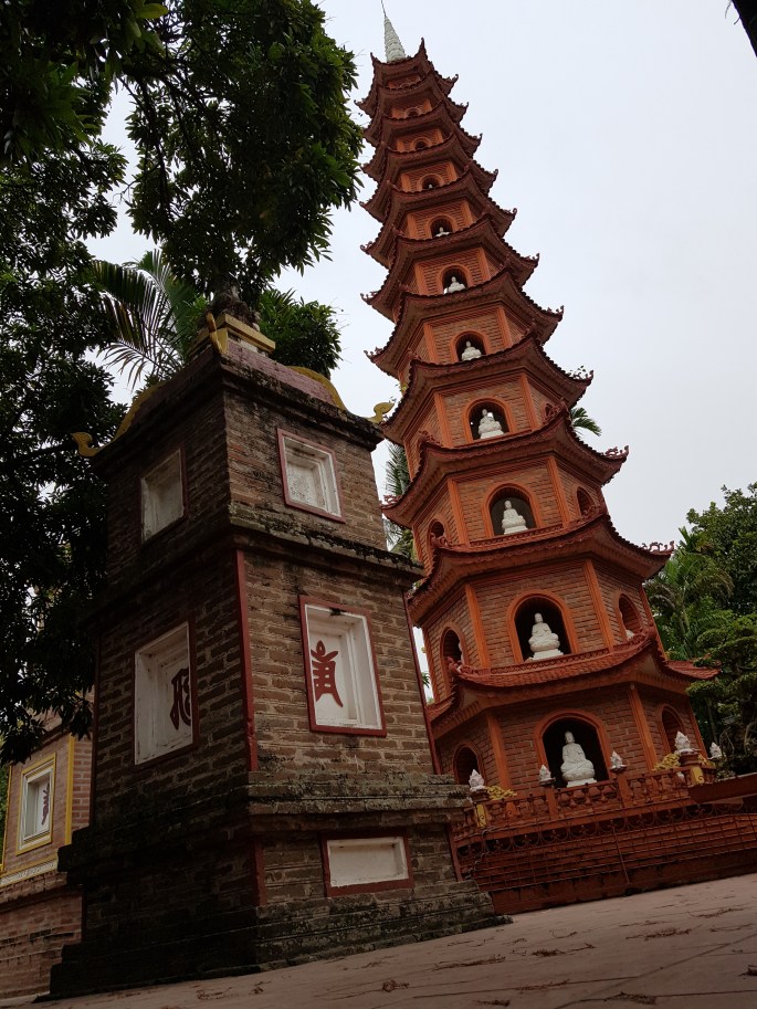 There’s a bicycle shop about halfway round that can only kit me out with a single decent touring tyre, so I buy that and sling it over my shoulder before continuing. I find that large parts of the lakeside are pretty, bordered by trendy restaurants and large expensive houses, but there are some uglier parts too. A handful of guys are fishing from the lakeshore on the way round, despite the presence of dead, floating fish on the water’s surface. The lake must be so dirty and polluted being in the middle of a huge city, so I’m surprised to see they’re still willing to catch and eat fish from there. I ride back to the Homestay to discover I’ve made a monumental cock-up with tyre sizes, and that my recent purchase is too small for my bike’s wheel. The next day I make a repeat journey round the lake to exchange my tyre for one that actually fits. Ordinarily I’d have been a bit annoyed at my own stupidity, but it’s a pleasant cycle round the lake and it’s allowed me another practice ride through Hanoi traffic.