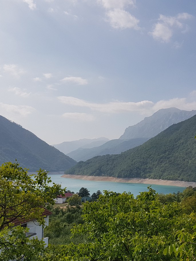 The road out of Podgorica is flat and hot to begin with, before it starts to climb through Mediterranean type scrub on its way up to the border. I’m now cycling above an inlet of the gigantic Lake Shkodër and, looking back, I can see its vast wetlands stretching away for miles into the distance. I’ve been slogging up this hill very slowly and gently, in an effort to preserve my warped rear wheel. All this restraint goes out the window though on a fast, steep descent to the border post. I’m such a sucker for a speedy downhill, despite the potential consequences.